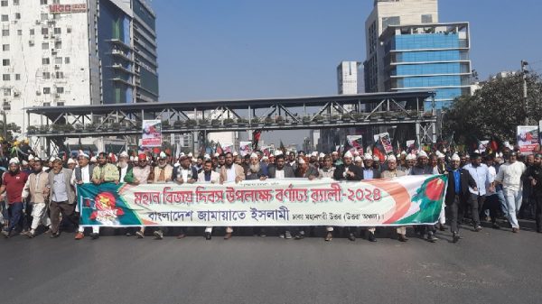 রাজধানীর উত্তরায় বিপুলসংখ্যক নেতাকর্মী নিয়ে মহান বিজয় দিবস উপলক্ষ্যে বিজয় র্যালি করেছে বাংলাদেশ জামায়াতে ইসলামী। সোমবার (১৬ ডিসেম্বর) সকাল সাড়ে ১০টায় জমজম টাওয়ারের সামনে থেকে সংগঠনটির ঢাকা মহানগরী উত্তর শাখার