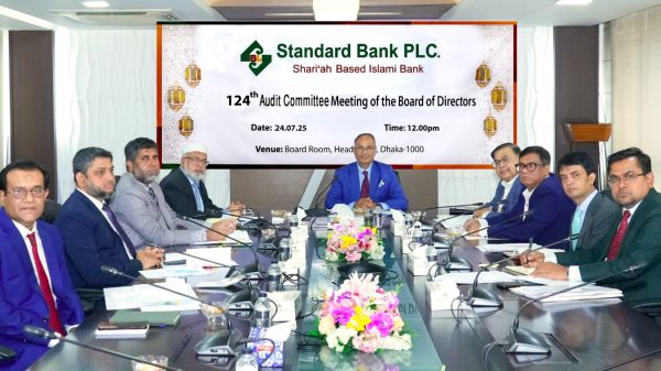 নিজস্ব প্রতিবেদকঃ স্ট্যান্ডার্ড ব্যাংক পিএলসি. এর অডিট কমিটির ১২৪তম সভা ২৪ জুলাই ২০২৫ তারিখে ঢাকায় ব্যাংকের প্রধান কার্যালয়ের বোর্ডরুমে জনাব গোলাম হাফিজ আহমেদ-এর সভাপতিত্বে অনুষ্ঠিত হয়। উক্ত সভায় কমিটির সদস্য