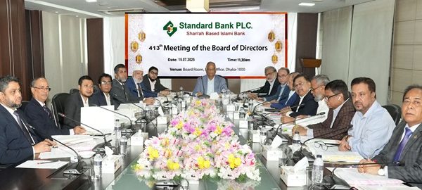 নিজস্ব প্রতিবেদকঃ শরি‘আহ্ ভিত্তিক স্ট্যান্ডার্ড ব্যাংক পিএলসি. এর পরিচালনা পর্ষদের ৪১৩তম সভা, ১৫ জুলাই ২০২৫ তারিখে ঢাকায় ব্যাংকের প্রধান কার্যালয়ের বোর্ডরুমে অনুষ্ঠিত হয়। উক্ত সভায় সভাপতিত্ব করেন ব্যাংকের পরিচালনা পর্ষদের