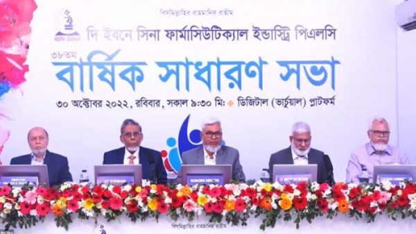 পুঁজিবাজারের তালিকাভুক্ত কোম্পানি দি ইবনে সিনা ফার্মাসিউটিক্যাল ইন্ডাস্ট্রি পিএলসির ৩৮তম বার্ষিক সাধারণ সভা অনুষ্ঠিত হয়েছে। রবিবার (৩০ অক্টোবর) ডিজিটাল (ভার্চুয়াল) প্লাটফর্মে অনুষ্ঠিত এ সভায় ২০২১-২২ অর্থ বছরের আর্থিক ফলাফলের ভিত্তিতে