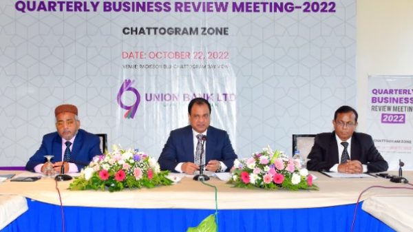 নিজস্ব প্রতিবেদকঃ ইউনিয়ন ব্যাংক লিমিটেড এর চট্টগ্রাম অঞ্চলের ত্রৈমাসিক ব্যবসা পর্যালোচনা সভা-২০২২ চট্টগ্রামে অনুষ্ঠিত হয়। প্রধান অতিথি হিসেবে উপস্থিত থেকে ব্যবসা পর্যালোচনা সভার উদ্বোধন করেন ব্যাংকের ব্যবস্থাপনা পরিচালক ও সিইও