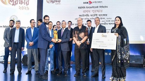 বাংলাদেশ সিকিউরিটিজ অ্যান্ড এক্সচেঞ্জ কমিশন কর্তৃক আয়োজিত সুবর্ণ জয়ন্তী-২০২১ এ ইউসিবি ইনভেস্টমেন্ট লিমিটেড মার্চেন্ট ব্যাংকিং ক্যাটাগরিতে প্রথম পুরস্কার অর্জন করেছে । সোমবার (১০ অক্টোবর) বঙ্গবন্ধু আন্তর্জাতিক সম্মেলন কেন্দ্রে এ বিষয়ক