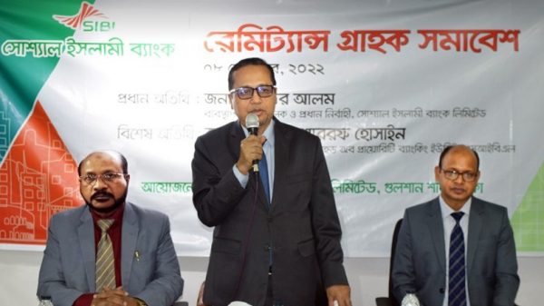 সোশ্যাল ইসলামী ব্যাংক গুলশান শাখার উদ্যোগে সম্প্রতি বৈধ পথে রেমিট্যান্স প্রেরণ ও দেশের আর্থ-সামাজিক উন্নয়নে বৈদেশিক রেমিট্যান্সের গুরুত্ব সম্পর্কে সচেতনতা বৃদ্ধির লক্ষ্যে রেমিট্যান্স গ্রাহক সমাবেশ ও মত বিনিময় সভা অনুষ্ঠিত