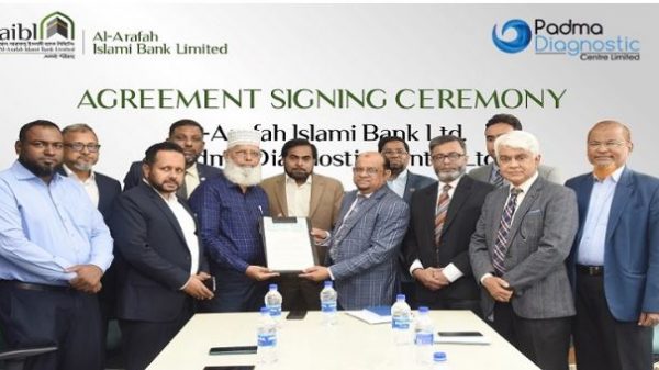 আল-আরাফাহ ইসলামী ব্যাংক লিমিটেডের সঙ্গে কর্পোরেট চুক্তি স্বাক্ষর করেছে পদ্মা ডায়াগনোস্টিক সেন্টার লিমিটেড। রোববার (৩১ জুলাই) ব্যাংকের প্রধান কার্যালয়ে এ চুক্তি স্বাক্ষর অনুষ্ঠিত হয়। এই চুক্তিতে ব্যাংকের কর্মকর্তা-কর্মচারীরা ও তাদের