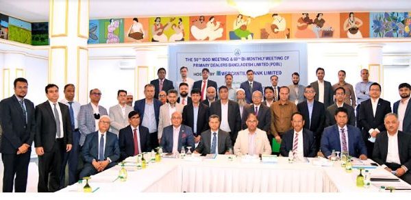 প্রাইমারি ডিলারস বাংলাদেশ লিমিটেডের (পিডিবিএল) ৫০তম বোর্ড অব ডিরেক্টরস ও ৬৯তম দ্বি-মাসিক সভা অনুষ্ঠিত হয়েছে। মার্কেন্টাইল ব্যাংকের আয়োজনে বৃহস্পতিবার (২৮ জুলাই) রাজধানীর এক হোটেলে এ সভা অনুষ্ঠিত হয়। অনুষ্ঠানে সভাপতিত্ব