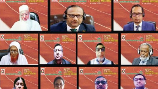 সোশ্যাল ইসলামী ব্যাংক লিমিটেডের ২৭তম বার্ষিক সাধারণ সভা (এজিএম) অনুষ্ঠিত হয়েছে। বুধবার (০৬ জুলাই) ভার্চুয়াল প্ল্যাটফর্মে এ সভা অনুষ্ঠিত হয়। এ সময় ২০২১ সালের জন্য ১০ শতাংশ লভ্যাংশ অনুমোদন করা