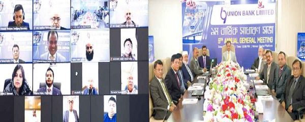 ইউনিয়ন ব্যাংক লিমিটেডের ৯ম বার্ষিক সাধারণ সভা (এজিএম) অনুষ্ঠিত হয়েছে। ব্যাংকের প্রধান কার্যালয়ে ভিডিও কনফারেন্সে মাধ্যমে এ সভা অনুষ্ঠিত হয়। এতে সভাপতিত্ব করেন ব্যাংকের চেয়ারম্যান আহসানুল আলম। এজিএমে ব্যাংকের পরিচালক