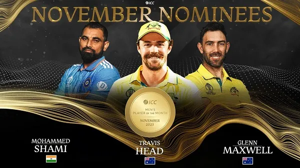 আইসিসির নভেম্বর মাসের সেরা খেলোয়াড়ের সংক্ষিপ্ত তালিকায় জায়গা করে নিয়েছেন অস্ট্রেলিয়ার দুই অলরাউন্ডার ট্রাভিস হেড ও গ্লেন ম্যাক্সওয়েল এবং ভারতের পেসার মোহাম্মদ শামি। বৃহস্পতিবার (৭ ডিসেম্বর) আইসিসি নিজেদের অফিশিয়াল ওয়েবসাইটে