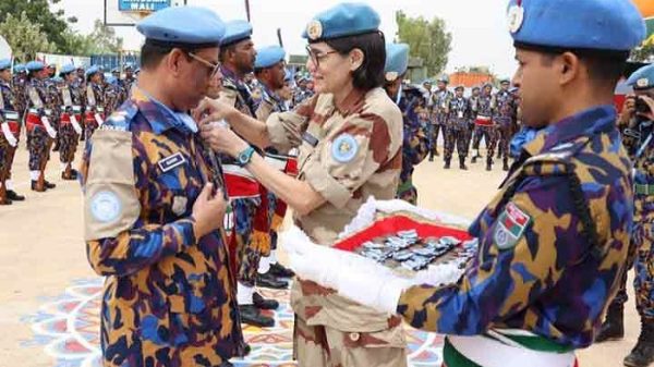 জাতিসংঘ শান্তিপদক পেলেন মালিতে জাতিসংঘ শান্তিরক্ষা মিশনে নিয়োজিত বাংলাদেশ আর্মড পুলিশ ইউনিট-২ (রোটেশন-৪) এর ১৪০ জন সদস্য। সোমবার (২৮ নভেম্বর) বাংলাদেশ আর্মড পুলিশ সদস্যদের শান্তিপদক পড়িয়ে দেন অনুষ্ঠানের প্রধান অতিথি