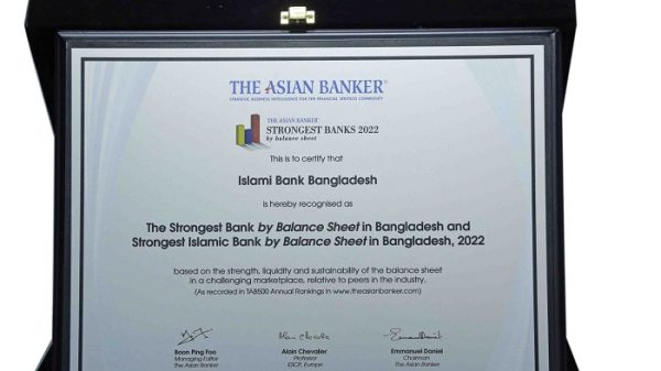 নিজস্ব প্রতিবেদক: দ্য এশিয়ান ব্যাংকার কর্তৃক ২০২২ সালের ‘বাংলাদেশের সবচেয়ে শক্তিশালী ব্যাংক’ হিসেবে স্বীকৃতি পেয়েছে ইসলামী ব্যাংক বাংলাদেশ লিমিটেড। একই সাথে ইসলামী ব্যাংককে ‘বাংলাদেশের সবচেয়ে শক্তিশালী ইসলামী ব্যাংক’ হিসেবেও স্বীকৃতি