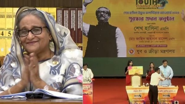 সামাজিক বিভিন্ন ক্ষেত্রে অসাধারণ অবদানের জন্য ১১ জন ব্যক্তির হাতে ‘শেখ হাসিনা ইয়ুথ ভলান্টিয়ার অ্যাওয়ার্ড’ তুলে দিয়েছে যুব ও ক্রীড়া মন্ত্রণালয়। এ সময় প্রধানমন্ত্রী তার সরকারি বাসভবন গণভবন থেকে ভার্চুয়ালি