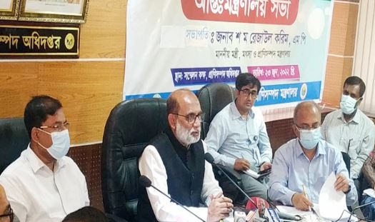 ঈদুল আজহা উপলক্ষে চাহিদার অতিরিক্ত কোরবানির পশু মজুত রয়েছে বলে জানিয়েছেন মৎস্য ও প্রাণিসম্পদ মন্ত্রী শ ম রেজাউল করিম। বৃহস্পতিবার (২৩ জুন) আসন্ন ঈদুল আজহা উপলক্ষ্যে কোরবানির পশুর চাহিদা নিরূপণ,