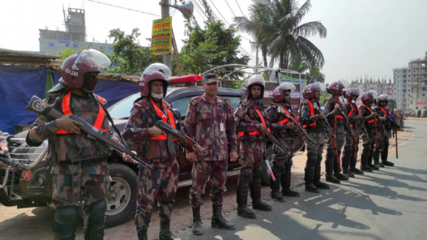 আইনশৃঙ্খলা পরিস্থিতি স্বাভাবিক রাখতে ঢাকা ও চট্টগ্রামে ১০ প্লাটুন বিজিবি মোতায়েন করা হয়েছে। এর মধ্যে রাজধানীর শাহবাগ, মৎস্যভবন ও হোটেল ইন্টারকন্টিনেন্টাল এলাকায় ৪ প্লাটুন এবং চট্টগ্রাম মহানগরীতে ৬ প্লাটুন বিজিবির