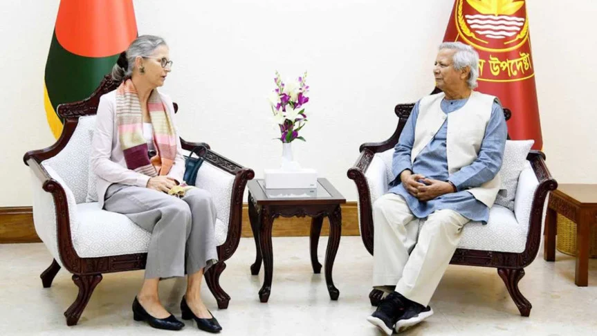 ঢাকার তেজগাঁওয়ে প্রধান উপদেষ্টা অধ্যাপক ড. মুহম্মদ ইউনূসের সঙ্গে তাঁর কার্যালয়ে সাক্ষাৎ করেছেন অস্ট্রিয়ার অনাবাসিক রাষ্ট্রদূত ক্যাথারিনা উইজার। গতকাল সোমবার (১৮ নভেম্বর) অনুষ্ঠিত বৈঠকে রাষ্ট্রদূত উইজার বলেন, পশ্চিম ইউরোপীয় দেশগুলো