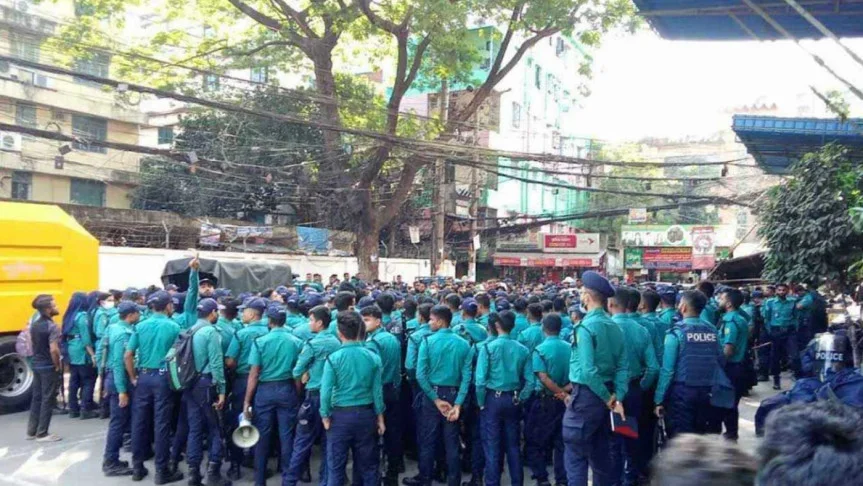 সরকারি তিতুমীর কলেজের শিক্ষার্থীদের মহাখালী অবরোধের কর্মসূচি ঘিরে কলেজটির সামনে বিপুল পুলিশ সদস্য মোতায়েন করা হয়েছে। একইসঙ্গে রাওয়া ক্লাবের সামনে থেকে মহাখালী রেলগেট পর্যন্ত সড়কে অবস্থান নিয়েছেন সেনাবাহিনীর শতাধিক সদস্য।