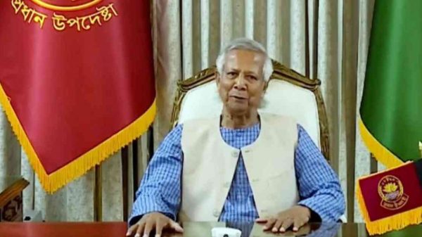 অন্তর্বর্তী সরকারের প্রধান উপদেষ্টা ড. মুহাম্মদ ইউনূস বলেছেন, মাত্র চার মাস আগে পৃথিবীর ঘৃণ্যতম স্বৈরাচারী শাসককে (শেখ হাসিনা) পালিয়ে যেতে বাধ্য করে আমাদের প্রিয় দেশকে মুক্ত করেছে ছাত্র-জনতার সম্মিলিত অভ্যুত্থান।