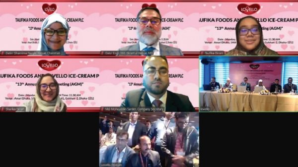 পুঁজিবাজারে তালিকাভুক্ত খাদ্য ও আনুষঙ্গিক খাতের কোম্পানি তাওফিকা ফুডস এন্ড লাভেলো আইসক্রিম পিএলসির ২০২৩-২০২৪ হিসাব বছরের জন্য ১০ শতাংশ নগদ ও ১০ শতাংশ স্টক লভ্যাংশ সহ অন্যান্য এজেন্ডা অনুমোদন করা