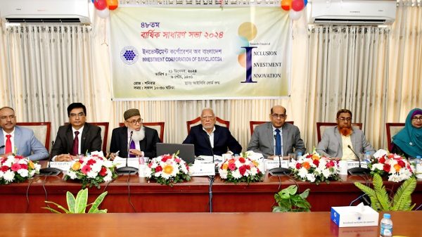 ইনভেস্টমেন্ট কর্পোরেশন অব বাংলাদেশ’র (আইসিবি) ৪৮তম বার্ষিক সাধারণ সভা (এজিএম) অনুষ্ঠিত হয়েছে। শনিবার (২১ ডিসেম্বর) সকাল ১০ টা ৩০ মিনিটে ভার্চুয়াল প্লাটফর্মে সভাটি অনুষ্ঠিত হয়। সভায় ৩০ জুন ২০২৪ তারিখে