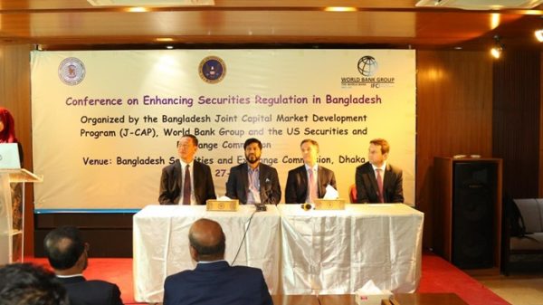 দেশের পুঁজিবাজারের উন্নয়নে বাংলাদেশ সিকিউরিটিজ অ্যান্ড এক্সচেঞ্জ কমিশনের (বিএসইসি) সঙ্গে কাজ করবে বিশ্বব্যাংক ও যুক্তরাষ্ট্রের সিকিউরিটিজ অ্যান্ড এক্সচেঞ্জ কমিশন (এসইসি)। এলক্ষ্যে রোববার (২৭ অক্টোবর) ‘সিকিউরিটিজ রেগুলেশন বাড়ানোর উপর সম্মেলন’ শীর্ষক