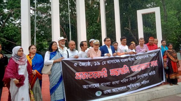 নিজস্ব প্রতিবেদকঃ অদ্য ৫ জ্যৈষ্ঠ ১৪৩১/১৯ মে ২০২৪, রোজ রবিবার সকাল ৮.৩০টায় ভাষা আন্দোলন স্মৃতিরক্ষা পরিষদের উদ্যোগে ঐতিহাসিক ১৯ মে ‘আসাম ভাষা দিবস’ উপলক্ষে প্রভাতফেরি, শ্রদ্ধাঞ্জলি ও আলোচনা সভা অনুষ্ঠিত।