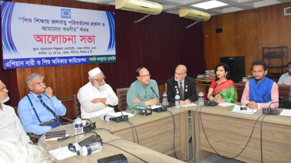 নিজস্ব প্রতিবেদকঃ এশিয়ান নারী ও শিশু অধিকার ফাউন্ডেশনের উদ্যোগ শিশু শিক্ষায় জলবায়ু পরিবর্তনের প্রভাব ও আমাদের করণীয় শীর্ষক আলোচনা সভায় অনুষ্ঠিত। ১১ মে রোজ২০২৪ রোজ শনিবার বিকাল -৪ টায় বাংলাদেশ