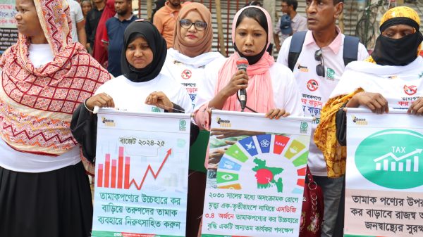 নিজস্ব প্রতিবেদকঃ জনস্বাস্থ্য সুরক্ষায় এবং মাননীয় প্রধানমন্ত্রী ঘোষিত ২০৪০ সালের পূর্বে বাংলাদেশকে তামাকমুক্ত করার অঙ্গীকার বাস্তবায়নের লক্ষ্যে আসন্ন ২০২৪-২৫ অর্থবছরের বাজেটে সব ধরনের তামাকজাত পণ্যের কর ও মূল্য উচ্চ হারে