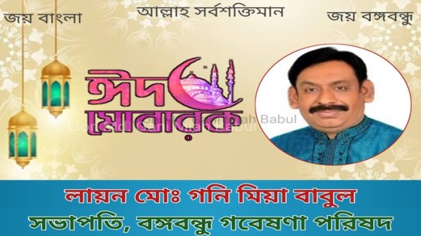 নিজস্ব প্রতিবেদকঃ পবিত্র ঈদ-উল-ফিতর উপলক্ষে সকলকে শুভেচ্ছা ও অভিনন্দন জানিয়েছেন, বঙ্গবন্ধু গবেষণা পরিষদের কেন্দ্রীয় সভাপতি লায়ন মোঃ গনি মিয়া বাবুল। তিনি বলেন, আমি সকলকে জানাই পবিত্র ঈদ-উল-ফিতরের আন্তরিক শুভেচ্ছা ও