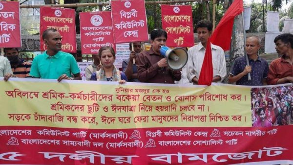নিজস্ব প্রতিবেদকঃ আজ ৬ এপ্রিল শনিবার দুপুর ১২ টায় অবিলম্বে শ্রমিক কর্মচারীদের বকেয়া বেতন ও বোনাস পরিশোধ, শ্রমিকদের ছুটি ও ঈদযাত্রায় হয়রানি বন্ধ, মহাসড়কে চাঁদাবাজি বন্ধ করে ঈদে ঘরে ফেরা