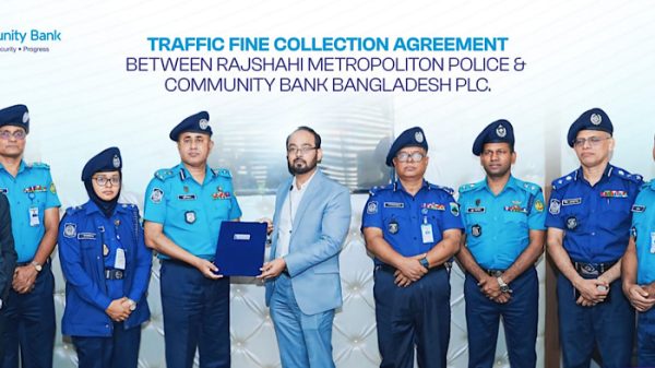 রাজশাহী, সেপ্টেম্বর ২৫, ২০২৫: রাজশাহীতে ট্রাফিক মামলার জরিমানা আদায় আরও সহজ ও স্বচ্ছ করার লক্ষ্যে রাজশাহী মেট্রোপলিটন পুলিশ (আরএমপি) এবং কমিউনিটি ব্যাংক বাংলাদেশ পিএলসি’র মধ্যে একটি চুক্তি স্বাক্ষরিত হয়েছে। বৃহস্পতিবার