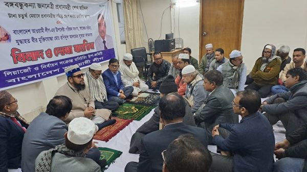 নিজস্ব প্রতিবেদকঃ বঙ্গবন্ধু কন্যা দেশরত্ন জননেত্রী শেখ হাসিনা টানা চতুর্থবার গণপ্রজাতন্ত্রী বাংলাদেশ সরকারের প্রধানমন্ত্রীর দায়িত্ব গ্রহণ করায় শুকরিয়া জ্ঞাপন, বঙ্গবন্ধু এবং তাঁর পরিবারের সদস্যদের রুহের মাগফিরাত কামনা এবং বাংলাদেশ আওয়ামী