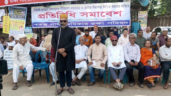 নিজস্ব প্রতিবেদকঃ ভোটার নিরাপত্তা নিশ্চিতকরণ ও নির্বাচনী ব্যবস্থায় বৈষম্যমূলক নিয়মাবলী সংশোধনের দাবিতে বৃহস্পতিবার সকাল ১০.৩০ মিনিটে জাতীয় প্রেসক্লাব সম্মুখে স্বতন্ত্র প্রার্থী অধিকার রক্ষা পরিষদের উদ্যোগে এক বিশাল প্রতিনিধি সমাবেশ অনুষ্ঠিত