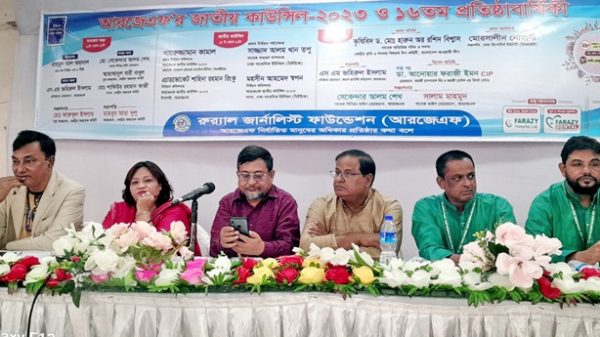 নিজস্ব প্রতিবেদকঃ রুর্যাল জার্নালিস্ট ফাউন্ডেশন (আরজেএফ) এর জাতীয় কাউন্সিল ২০২৩ ও ১৬তম প্রতিষ্ঠা বার্ষিকী উপলক্ষে ২৮ অক্টোবর শনিবার দিনব্যাপি জাতীয় প্রেসক্লাব মিলনায়তনে আলোচনা সভা অনুষ্ঠিত হয়। অনুষ্ঠানের প্রথম পর্বে উদ্বোধন