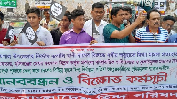 নিজস্ব প্রতিবেদকঃ অদ্য ১৩ অক্টোবর ২০২৩ খ্রি: তারিখ শুক্রবার বাগেরহাটের রামপাল উপজেলার নির্দোষ রূপালি দাসের বিরুদ্ধে ধর্মীয় অযুহাতে মিথ্যা মামলা প্রত্যাহার এবং চক্রান্তকারীদের গ্রেফতার, মুন্সিগঞ্জের মেয়র ফয়সাল বিপ্লব কর্তৃক প্রকাশ্যে