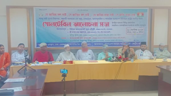 ২০ সেপ্টেম্বর শনিবার সকাল ১০.৩০ টায় জাতীয় প্রেস ক্লাবের তফাজ্জল হোসেন মানিক মিয়া হলে বাংলাদেশ সনাতন পার্টি (বিএসপি) কেন্দ্রীয় কমিটির উদ্যোগে দুর্গা পূজার নিরাপত্তা অন্তবর্তী সরকার-এর এক বছর বৈষম্যমুক্ত, অসাম্প্রদায়িক