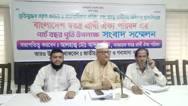 নিজস্ব প্রতিবেদকঃ মুক্তিযুদ্ধের চেতনা ও মানবাধিকার প্রতিষ্ঠা এবং স্বতন্ত্র প্রার্থীদের অধিকার পুনঃরুদ্ধরে বাংলাদেশ স্বতন্ত্র প্রার্থী ঐক্য পরিষদ কর্তৃক ২ সেপ্টেম্বর সকাল ১১টায় জাতীয় প্রেসক্লাব মওলানা আকরম খাঁ হলে আয়োজিত সংবাদ