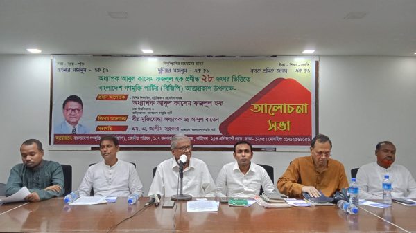 নিজস্ব প্রতিবেদকঃ অদ্য ২৫ আগস্ট সকাল ১০টায় জাতীয় প্রেসক্লাবের জহুর হোসেন চৌধুরী হলে এম এ আলীম সরকারের সভাপতিত্বে বিশিষ্ট শিক্ষাবিদ, রাষ্ট্রচিন্তক, রেনেসাঁস সাধক ও বাংলাদেশ গণমুক্তি পার্টির তাত্বিক নেতা অধ্যাপক আবুল