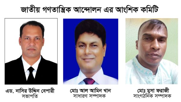 নিজস্ব প্রতিবেদকঃ জাতীয় গণতান্ত্রিক আন্দোলনের আংশিক কমিটি গঠিত হয়েছে। আজ ১৪ই আগস্ট সকালে সংগঠনের কেন্দ্রীয় কার্যালয়ে সংগঠনের সদস্য বিদায়ী সভাপতি এম. জাহাঙ্গীর আলমের সভাপতিত্বে অনুষ্ঠিত সাধারণ সভায় সর্বসম্মতিক্রমে এ আংশিক