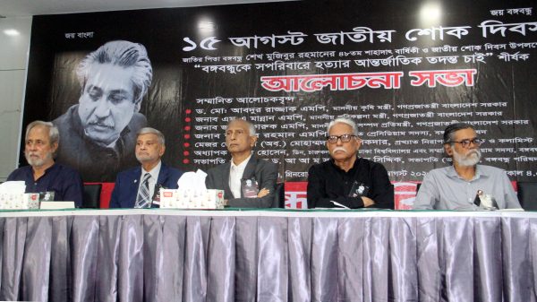নিজস্ব প্রতিবেদকঃ আজ বিকেলে রাজধানীর গ্রীনরোড-পান্থপথ সংলগ্ন পানি ভবন মিলনায়তনে জাতির পিতা বঙ্গবন্ধু শেখ মুজিবুর রহমানের ৪৮তম শাহাদাৎ বার্ষিকী ও জাতীয় শোক দিবস উপলক্ষ্যে “বঙ্গবন্ধুকে সপরিবারে হত্যার আন্তর্জাতিক তদন্ত চাই”