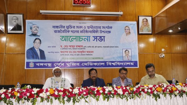নিজস্ব প্রতিবেদকঃ বঙ্গবন্ধু শেখ মুজিব মেডিক্যাল বিশ্ববিদ্যালয়ে পুষ্পস্তবক অর্পণ, আলোচনা সভাসহ নানা আয়োজনে বাঙালির মুক্তির সনদ ও স্বাধীনতার সংগঠক একমাত্র রাজনৈতিক দল বাংলাদেশ আওয়ামী লীগের ৭৪তম প্রতিষ্ঠাবার্ষিকী পালিত হয়েছে। বাংলাদেশের