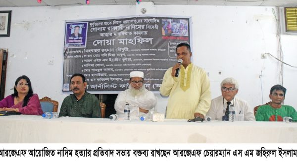নিজস্ব প্রতিবেদকঃ সারাদেশে সাংবাদিক হত্যা, নির্যাতনের প্রতিবাদ ও জামালপুরে দুবৃত্তদের হাতে প্রয়াত সাংবাদিক গোলাম রাব্বানী নাদিম হত্যার প্রতিবাদ ও বিদেহী আত্মার মাগফেরাত কামনায় রুর্যাল জার্নালিস্ট ফাউন্ডেশন (আরজেএফ) এর উদ্যোগে ২২