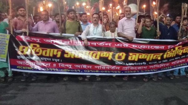 নিজস্ব প্রতিবেদকঃ অদ্য ২ জুন, শুক্রবার শাহবাগ জাতীয় যাদুঘর চত্বরে হিন্দু আইন পরিবর্তন প্রতিরোধ সম্মিলিত পরিষদের আহ্বানে হিন্দু ধর্মীয় সামাজিক সংগঠন সমূহ এবং বাংলাদেশ সুপ্রিম কোর্ট বার ও ঢাকা বার
