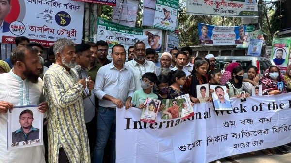 নিজস্ব প্রতিবেদকঃ ২৭ মে ২০২৩, শনিবার সকালে জাতীয় প্রেসক্লাবের সামনে গুমের শিকার ব্যক্তিদের স্মরণে আর্ন্তজাতিক সপ্তাহ পালন উপলক্ষে জাতীয় প্রেসক্লাবে মায়ের ডাকের উদ্যোগে প্রতিবাদী সমাবেশে সভাপতিত্ব করেন মায়ের ডাকের সমন্বয়কারী