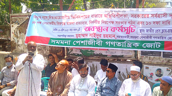 নিজস্ব প্রতিবেদকঃ রাজধানীর বঙ্গবাজারে অগ্নিকাণ্ডে ক্ষতিগ্রস্ত ব্যবসায়ীদের অবিলম্বে ক্ষতিপূরণ ও পুনর্বাসনের দাবি জানিয়েছে সমমনা পেশাজীবী গণতান্ত্রিক জোট। তা না হলে গণভবন ঘেরাও কর্মসূচি দেওয়া হবে বলে হুঁশিয়ারি দিয়েছেন জোটের শীর্ষ