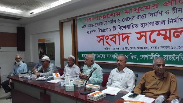 নিজস্ব প্রতিবেদকঃ ২৮ এপ্রিল সোমবার সকাল ১১ টায় জাতীয় প্রেসক্লাবের তফাজ্জল হোসেন মানিক মিয়া হলে দক্ষিণাঞ্চলের মানুষের প্রাণের দাবি ভাঙ্গা হতে কুয়াকাটা পর্যন্ত ৬ লেনের রাস্তা নির্মাণ ও চীন সরকারের