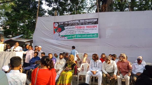 নিজস্ব প্রতিবেদকঃ আজ ০৯ এপ্রিল ২০২৫ ইং জাতীয় প্রেসক্লাব চত্বরে ভাসানী অনুসারী পরিষদ (ভাসানী জনশক্তি পার্টি) কর্তৃক আয়োজিত “ইসরায়েল কর্তৃক ফিলিস্তিনে বর্বর গনহত্যার প্রতিবাদে বিক্ষোভ সমাবেশ” অনুষ্ঠিত হয়েছে। বিক্ষোভ সমাবেশে
