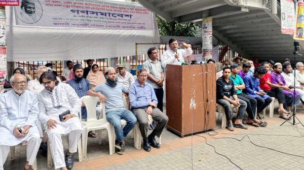 নিজস্ব প্রতিবেদকঃ ভাসানী অনুসারী পরিষদের (ভাসানী জনশক্তি পার্টি) আহ্বায়ক আজ জাতীয় প্রেসক্লাবের সামনে আয়োজিত সমাবেশে উপরোক্ত কথা বলেন। এস আলম, সামিট গ্রুপসহ ফ্যাসিবাদের দোসর চিহ্নিত লুটেরা ও অর্থ পাঁচারকারীদের অবৈধ