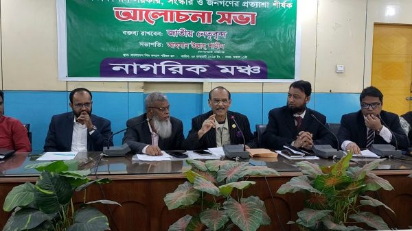 নিজস্ব প্রতিবেদকঃ আজ ২৫ শে জানুয়ারি ২০২৫ শিশু কল্যাণ পরিষদ দ্বিতীয় তালা কনফারেন্স রুমে নাগরিক মঞ্চ কতৃক আয়োজিত অন্তর্বর্তীকালীন সরকার সংস্কার ও জনগণের প্রত্যাশা শীর্ষক আলোচনা সভায় বাংলাদেশ মুসলিম সমাজের