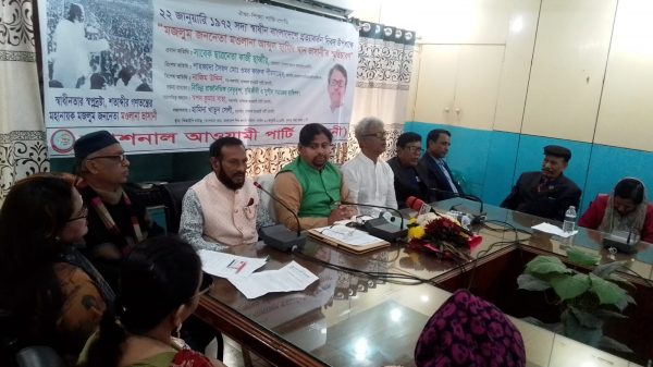 নিজস্ব প্রতিবেদকঃ ন্যাশনাল আওয়ামী পার্টি (ভাসানী) এর উদ্যোগে ২২ জানুয়ারি বুধবার সকাল ১১টায় বাংলাদেশ শিশু কল্যাণ পরিষদ মিলনায়তনে ভিআইপি লাউঞ্জে স্বাধীনতার স্বপ্নদ্রষ্ঠা, ১৯৭২ সালের ২২শে জানুয়ারি প্রত্যাবর্তন দিবস মজলুম জননেতা