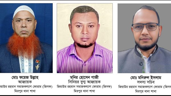 নিজস্ব প্রতিবেদকঃ মোঃ ফয়েজ উল্লাহ কে আহ্বায়ক, মনির হোসেন গাজী কে সিনিয়র যুগ্ম আহ্বায়ক ও মোঃ মনিরুল ইসলাম কে সদস্য সচিব করে জিয়াউর রহমান সমাজকল্যাণ ফোরাম (জিসফ) মিরপুর থানা শাখার