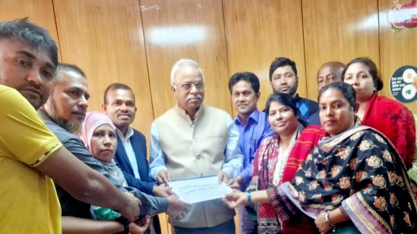 নিজস্ব প্রতিবেদকঃ ১৩ জানুয়ারি ২০২৫ (সোমবার) দুপুর ১২ টায় শ্রম ভবনে গার্মেন্টস শ্রমিক পরিষদের ১৪ দফা সংস্কার প্রস্তাবনা লিখিত পত্রের মাধ্যমে শ্রম সংস্কার কমিশনের প্রধান সৈয়দ সুলতান উদ্দিন আহম্মেদের নিকট